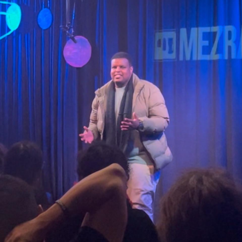 That’s me, Muaad Sucule, presenting a poem at Amsterdam’s House of Stories